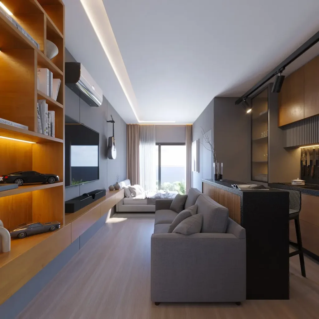 Usamos o sketchup para modelagem de alvenaria e marcenaria apenas e exportamos no 3ds max com o chaos corona para renderizar, para ter muito mais qualidade em menos tempo!